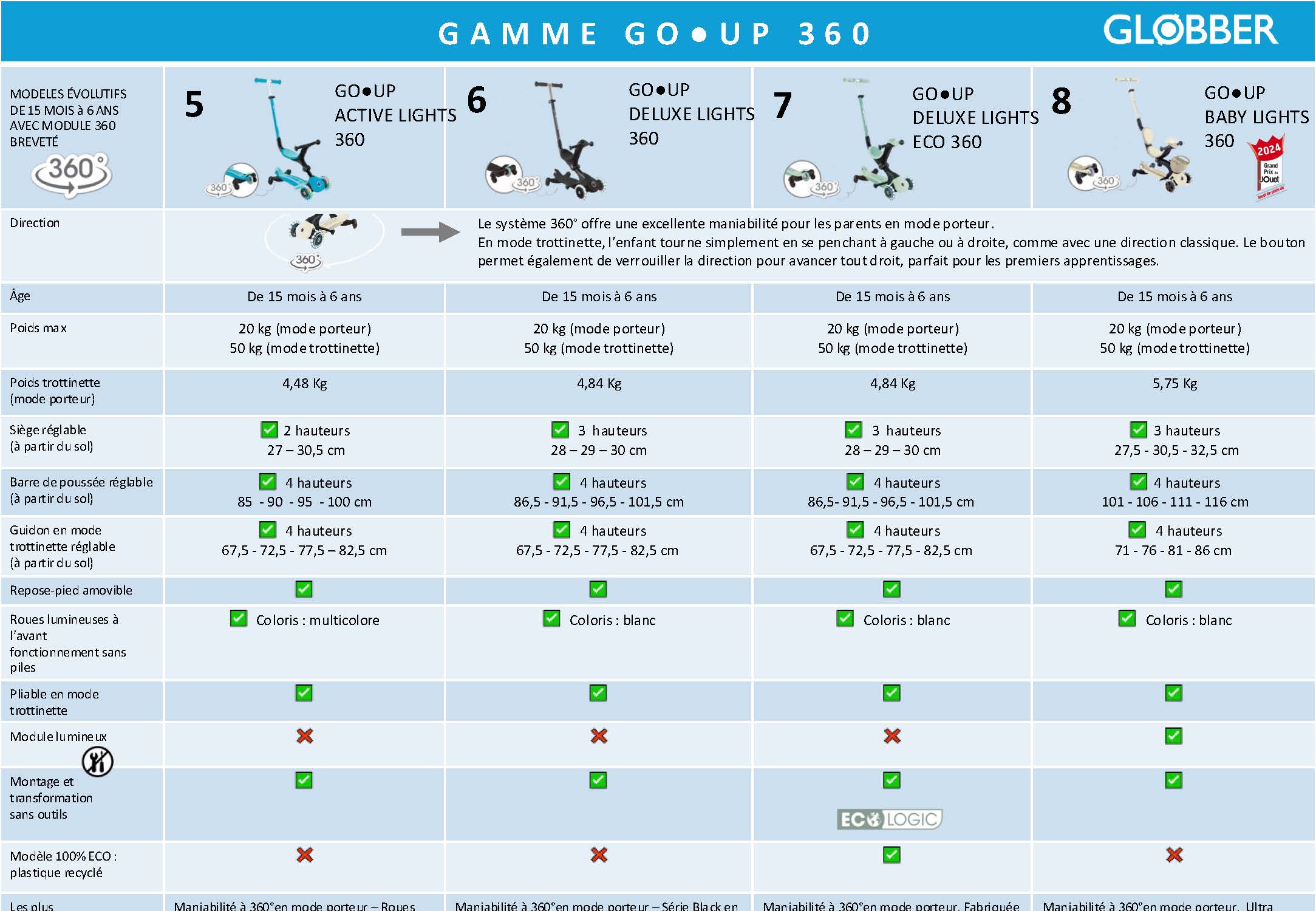 Découvrir et comparer tous les modèles de GO UP 360. Télécharger le comparatif