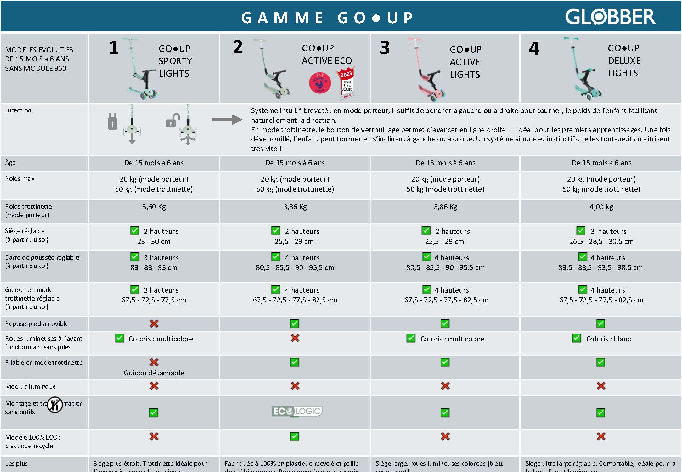 Découvrir et comparer tous les modèles de GO UP classique. Télécharger le comparatif